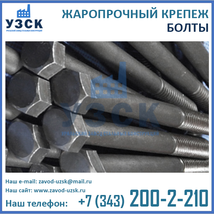 Являясь непосредственным производителем теплостойких метизов, Уральский Завод Стальных Конструкций может изготовить крепеж для высоких температур любого исполнения, как типового, так и нестандартного (по индивидуальным размерам и характеристикам заказчика). У нас Вы можете заказать оцинкованные болты, шпильки и гайки, обладающие жаропрочными свойствами, а также хромированные метизы.
